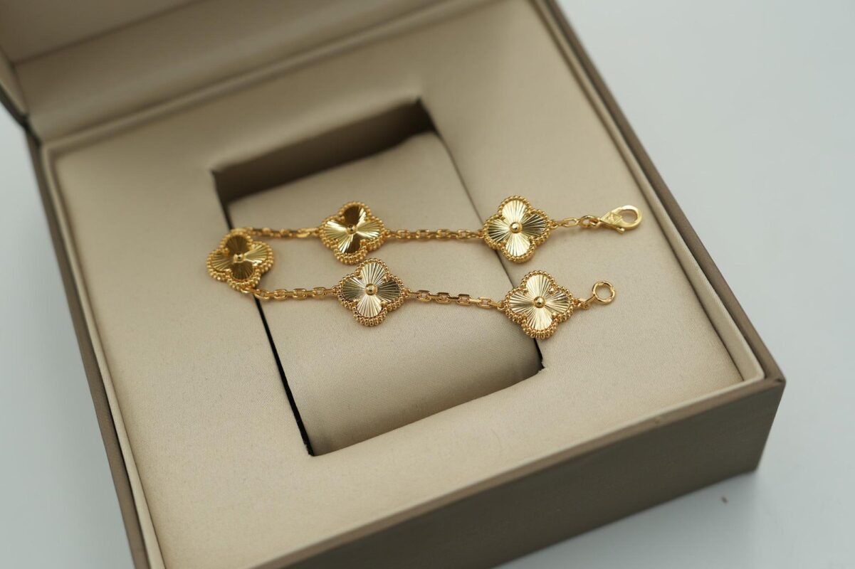 Guilloché Chalcedony Clover Bracelet – 5 Motif Gold