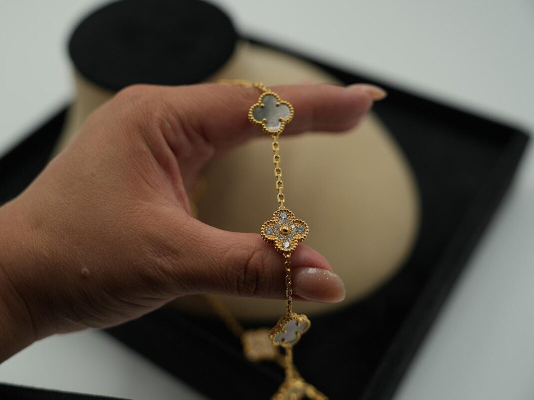 Gray MoP Clover Necklace – 10 Charm White Gold